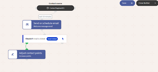 Mautic’s campaign builder enables visual workflow design. Contacts can move through campaigns based on actions such as: